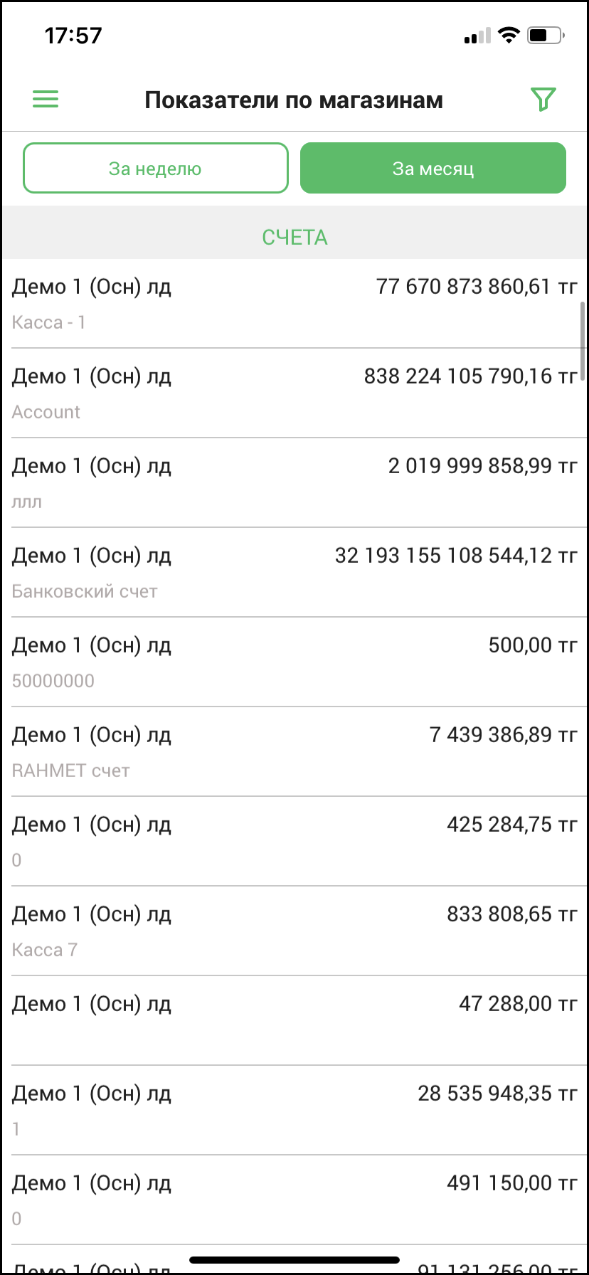 Спустив страницу ниже, в таблице “Счета” вы увидите информацию о счетах - к какомумагазину привязан счет, название счета, сумма на счете и разрешен ли отрицательныйбаланс.