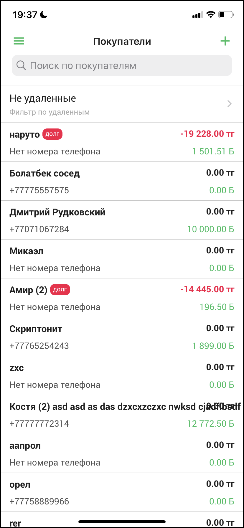 Для того, чтобы создать покупателя, нажмите на кнопку “➕” в правом нижнем углу экрана.