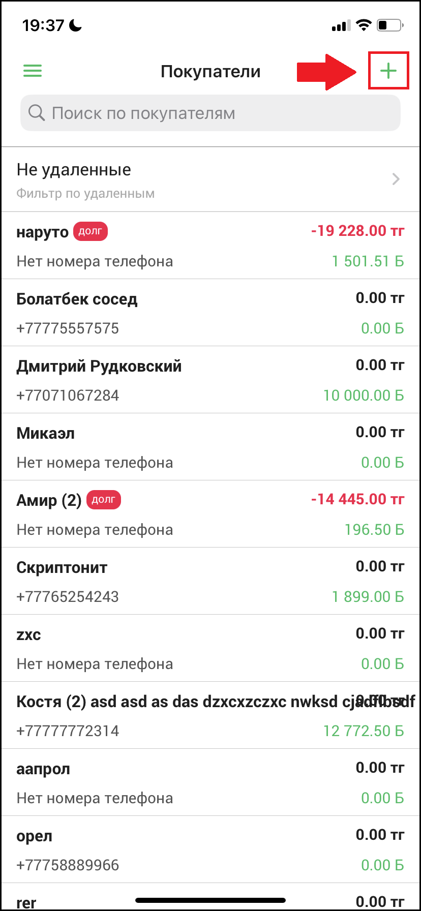 Для того, чтобы создать покупателя, нажмите на кнопку “➕”.