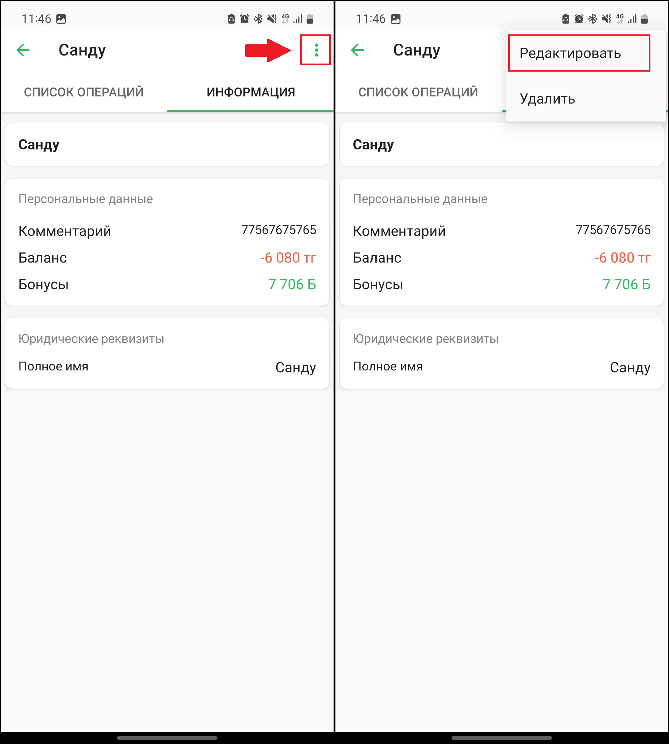 Для того, чтобы отредактировать покупателя, нажмите на три точки в правом верхнем углу страницы и выберите “Редактировать”.