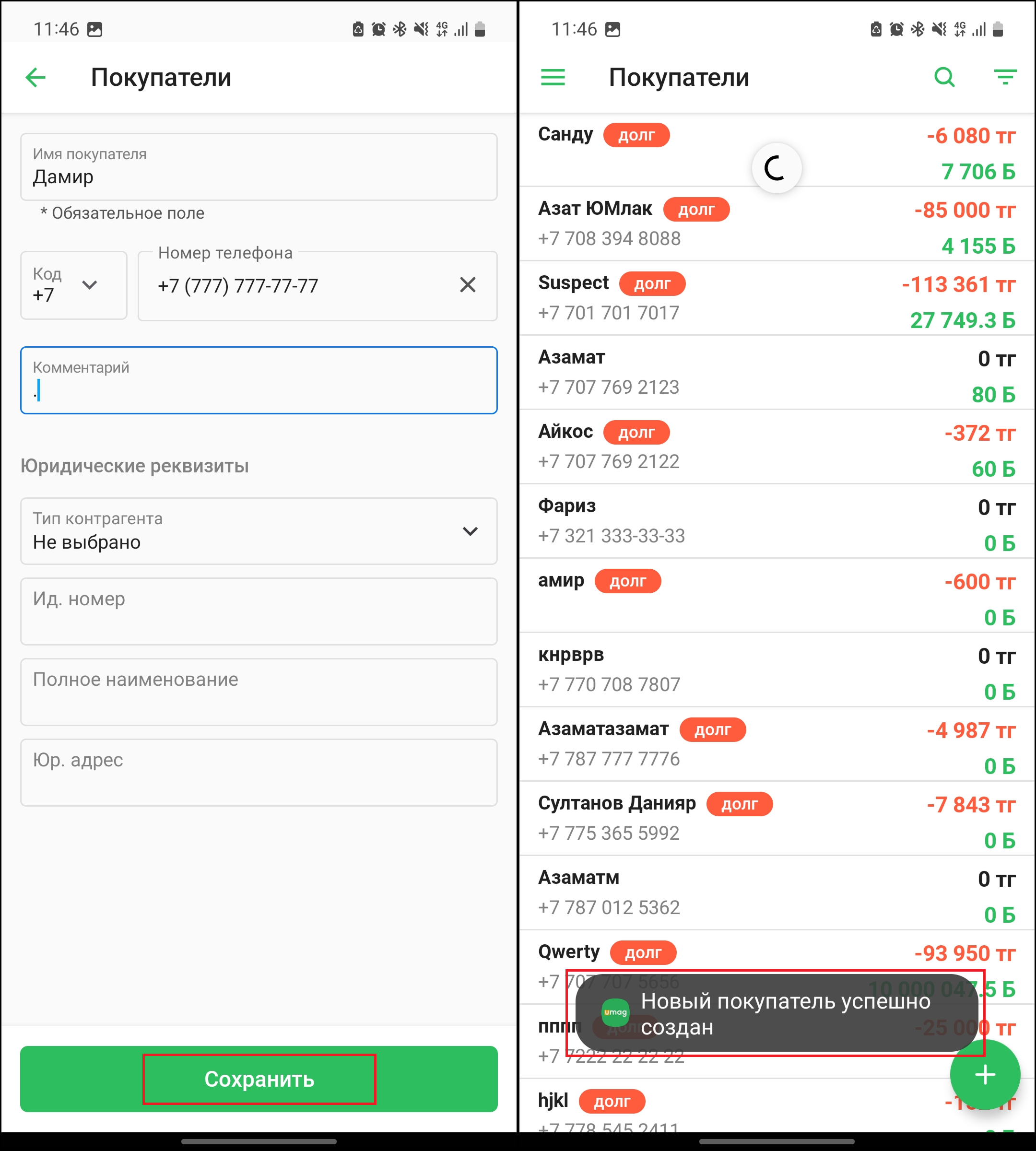 При необходимости заполните юридические реквизиты покупателя. Нажмите на кнопку “Сохранить”, чтобы создать нового покупателя.